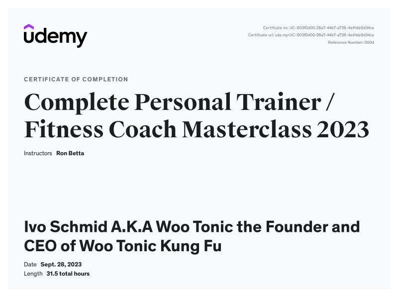 Diese Online Personal Training Selbstverteidigungs, Kampfkunst Ausbildung ist ein Abonnement von mindestens 6 Monaten, der Monat kostet 50 CHF der Lehrplan (das Curriculum) beinhaltet 2 mal pro Monat eine halbe stunde Personal Online Live Training mit dem Selbstverteidigungs Lehrer. Das Selbstverteidigungs Examen ist im Preis Inbegriffen. Bitte Telefonnummer beim bezahlvorgang Hinterlassen, Woo Tonic Kung Fu wird Sie Telefonisch kontaktieren! Für ein kostenloses Beratungsgespräch über die Selbstverteidigungs stile die Sie bei Woo Tonic Kung Fu Lernen können. Dann können Sie entscheiden welchen Selbstverteidigungs Stil Sie am Liebsten erlernen wollen. Alle Selbstverteidigungs, Kampkunst Stile können dem Schüler angepasst werden, auf wunsch des Schülers der Schüler, an die Körperlichen Möglichkeiten die Körperlichen Fähigkeiten. Sie können selber wählen ob Sie die Selbstverteidigungs Ausbildung mehr als 6 Monate Kaufen wollen. Sie können die Selbstverteidigungs Ausbildung entweder immer wieder um einen Monat verlängern, oder direkt für 6 Monate verlängern. Wenn Sie nach 12 Monaten die Ausbildung nicht für weitere 6 Monate verlängern wollen, können Sie jeden weiteren Monat einzeln buchen.